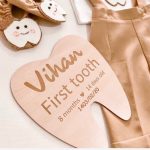 استند دندونی چوبی که اسم و تاریخ تاریخ دندون دراوردن کودک روش حک میشه