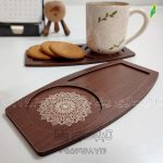 زیر لیوانی و تخته سرو مدل گل از جنس ام دی اف هست و طرح گل روی آن حک شده است. سرو انواع نوشیدنی در فنجان و لیوان و انواع ماگ امکان پذیر هست . در قسمت سرو امکان سرو شکلات، کیک، بیسکوییت و … وجود دارد . قابل تمیز کردن با دستمال نمدار و استفاده در خانه و محل کار ، مهمانی ها و کافی شاپ و …